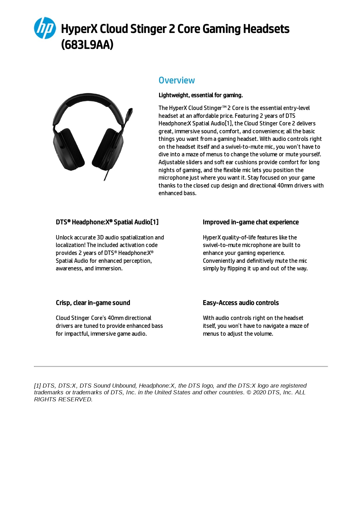 HYPERX HEADPHONES - FOR GAME CONSOLE - WIRED - CLOUD STINGER CORE PS5 2 WHIT